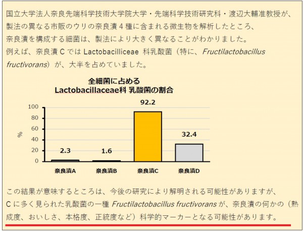 さらに渡辺准教授は研究結果の中で、この乳酸菌の存在自体が、奈良漬の「熟成度、おいしさ、本格度、正統度」を示す『科学的マーカー』となる可能性を明記されました。